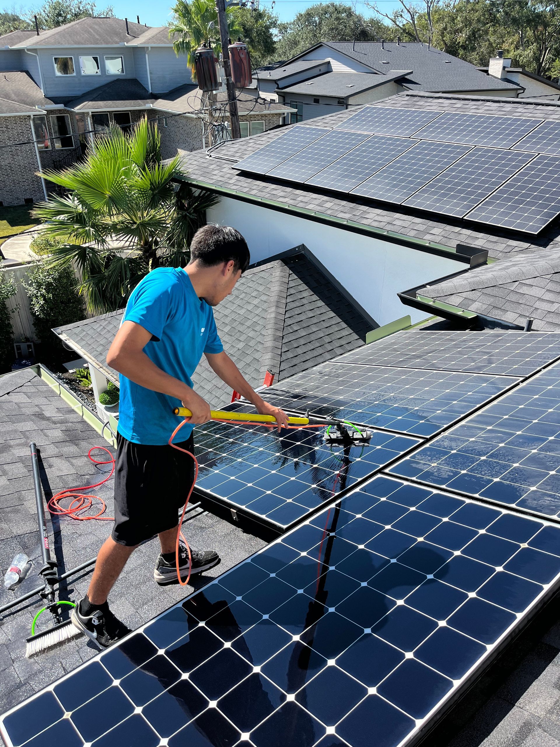 Dirty panels are less efficient. We use our pure water system to clean them safely, helping you get the most energy output.